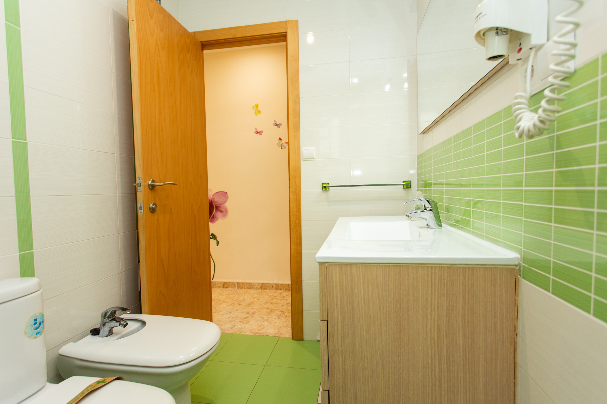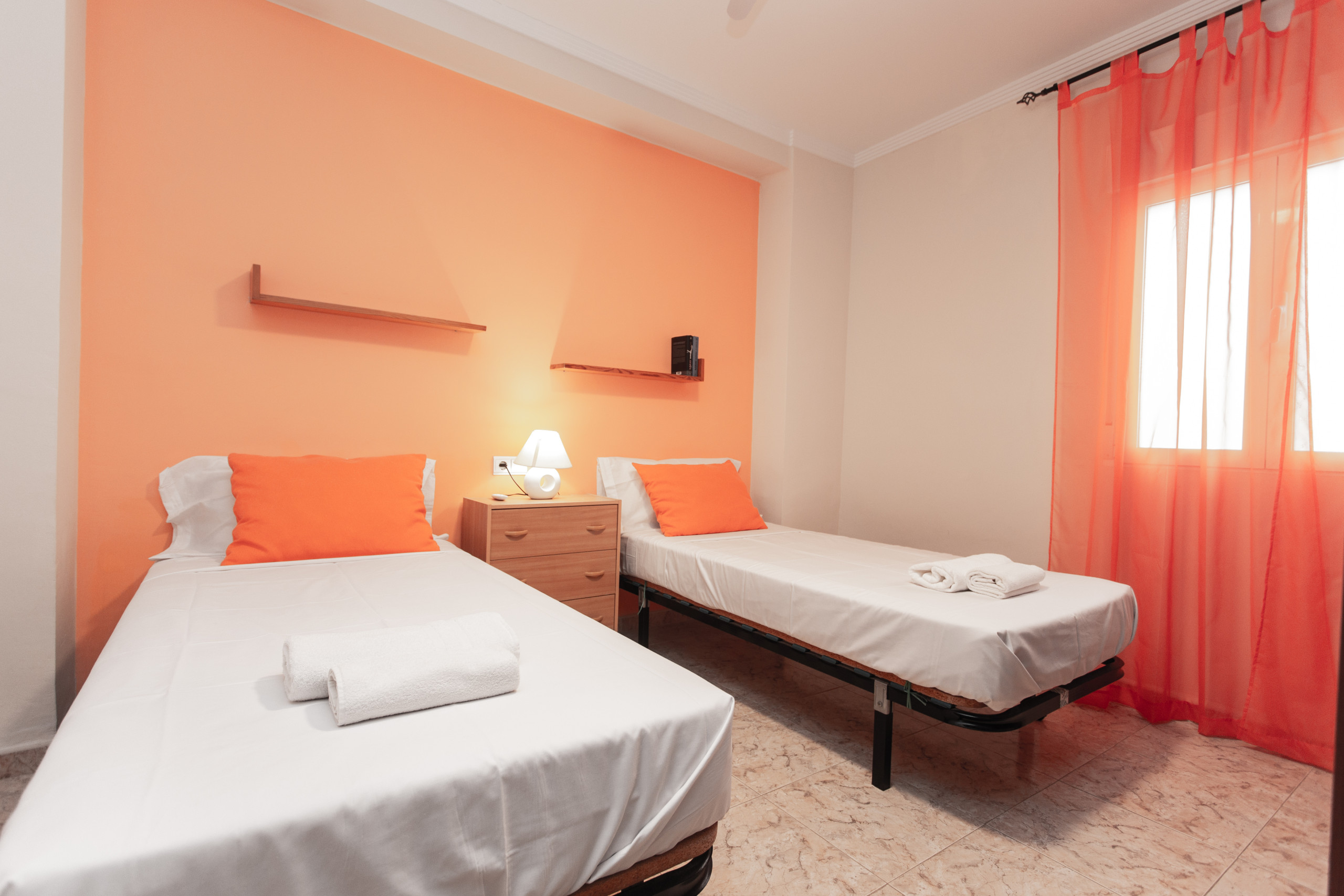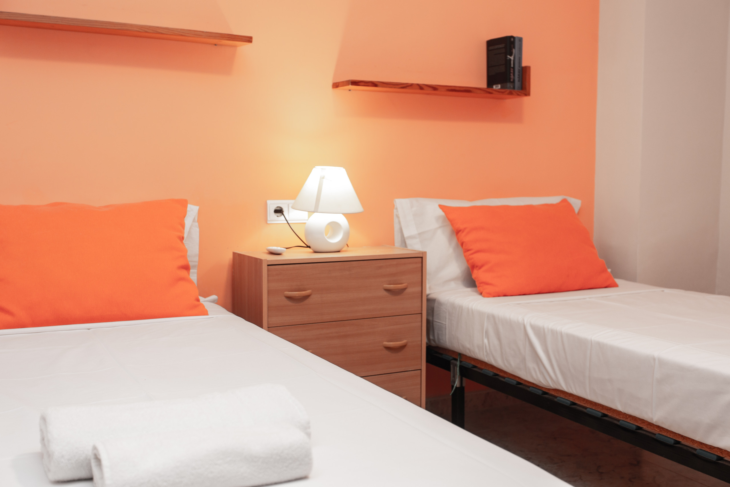 L'appartement dispose de trois chambres distribuées de manière fonctionnelle : une chambre double avec un lit double, une chambre avec deux lits et une chambre avec un lit simple.