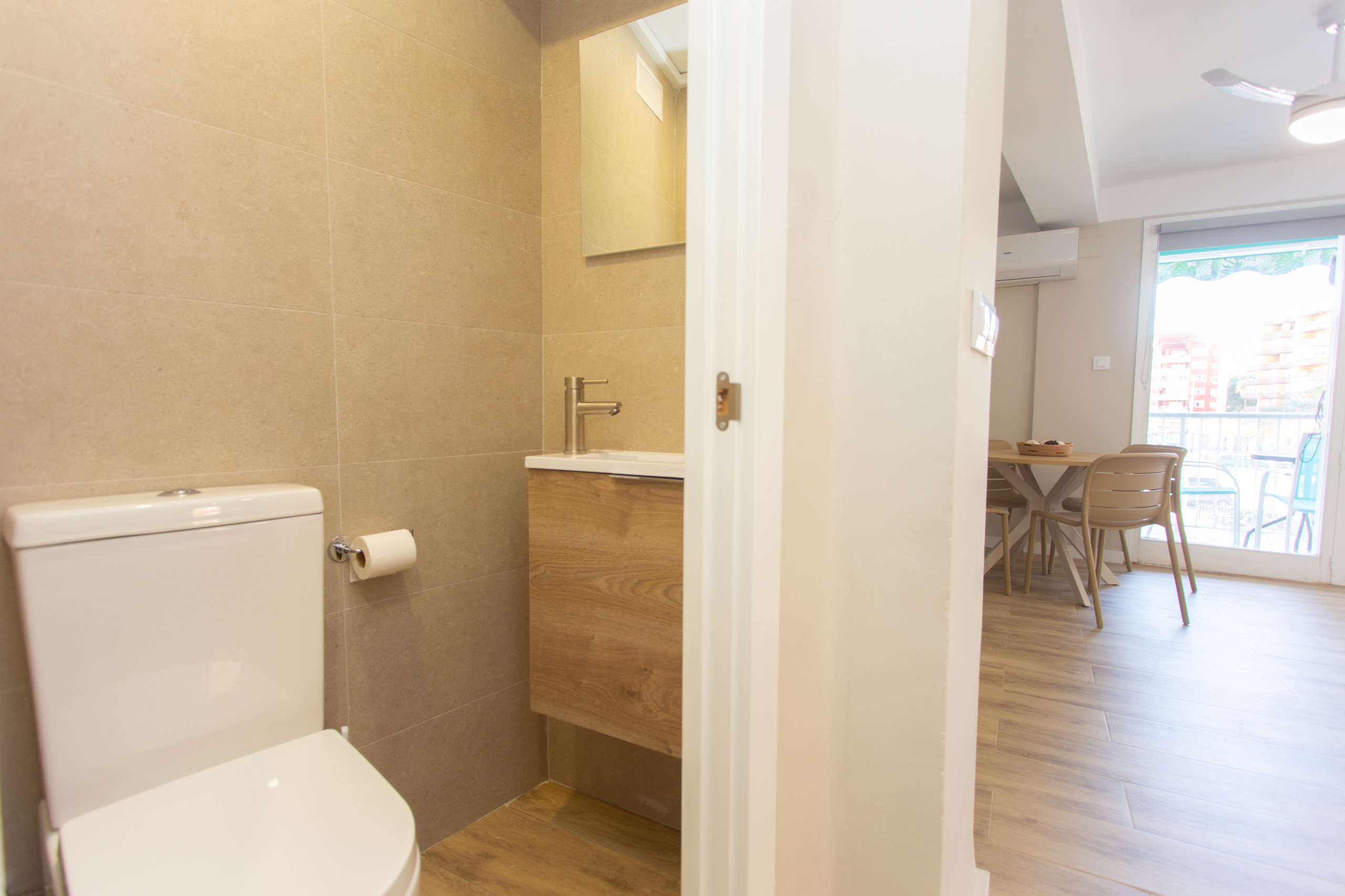 L'appartement dispose d'un ascenseur et d'une terrasse ensoleillée où se détendre à la fin de la journée. Il est équipé d'un climatiseur split froid/chaud dans la chambre principale et un autre split froid/chaud dans le salon, ainsi qu'un ventilateur de plafond, pour assurer le confort à toutes les saisons. Il comprend également le wifi, un lave-linge, un fer à repasser, un sèche-cheveux, une télévision et une place de parking extérieure (selon disponibilité) dans le même immeuble.